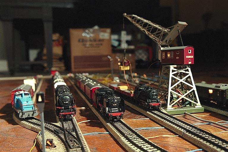 A final shot of the German Freight, with some action by the Crane. This shot is close to what you see when you put your head down on the floor at one end of the layout, its beautiful macro photography work by Frank.