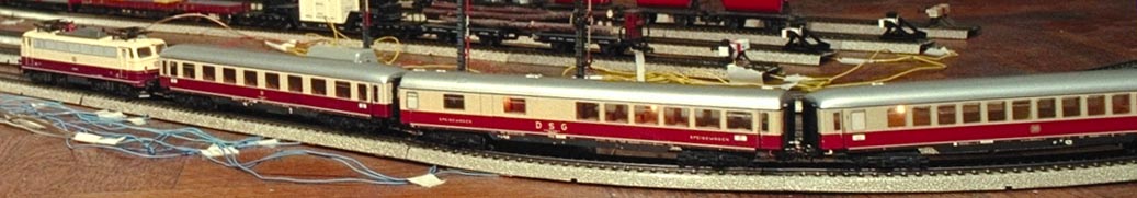 Most of my stuff is European, but in 1999 I began to collect some American rolling stock. This is a beautiful model of the Amtrak Streamliner (thanks Ed Goodnight of Modellbahn Collectors!). I think these trains are gorgeous, particularly the lighted trains when running in the dark.